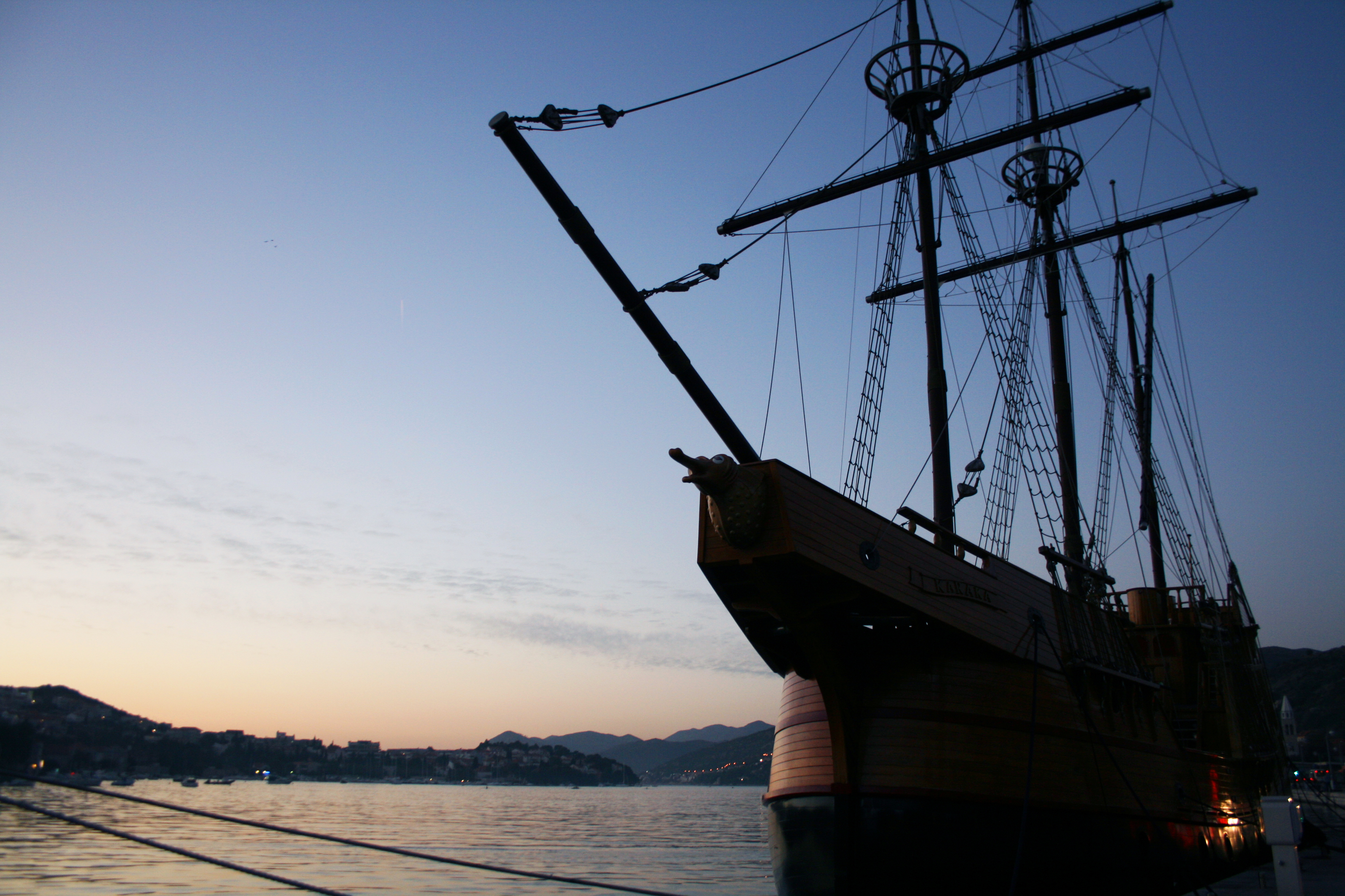 Old sailing ship floating in the harbor of Dubrovnik old town