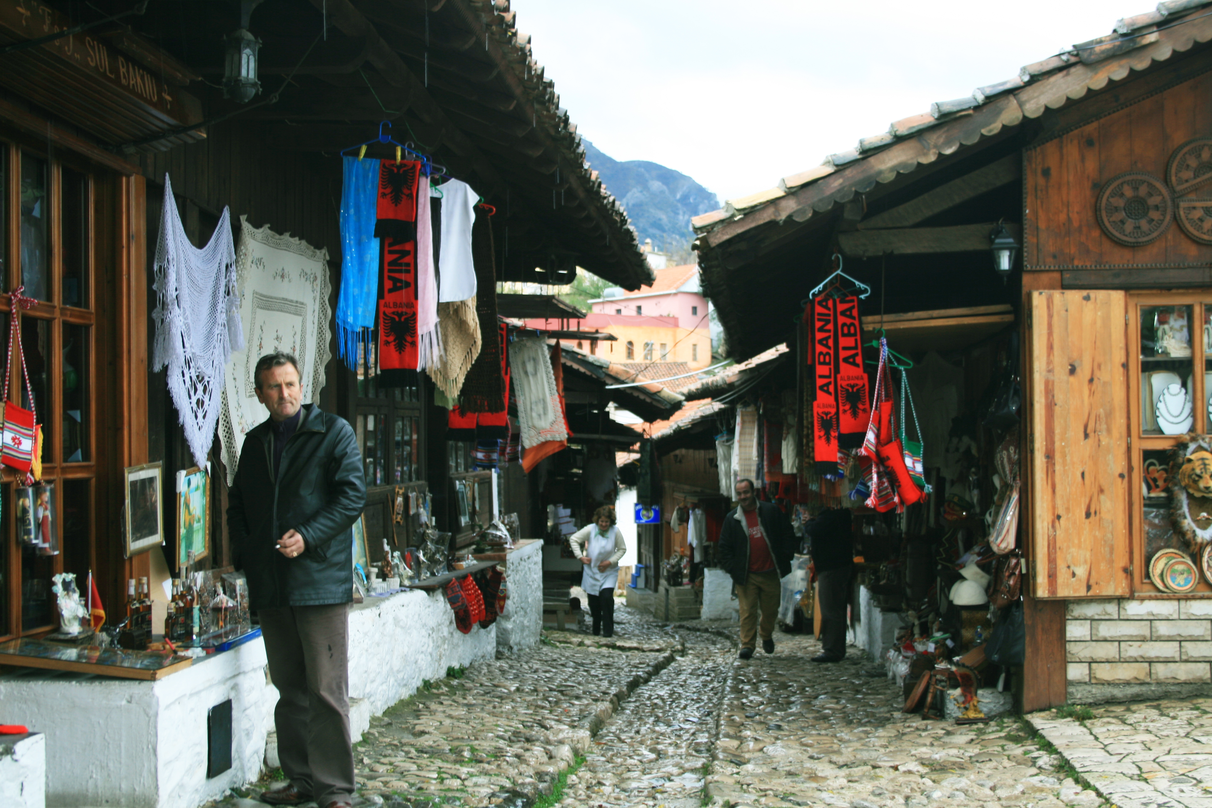 Souvenir shop street in the ancient city of Kruje